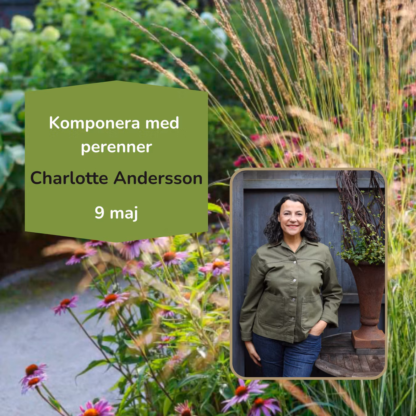 Under vårens föreläsningar hos oss delar Charlotte med sig av sin designfilosofi, sina favoriter bland växtkombinationer och praktiska råd för att skapa vackra, hållbara trädgårdsrum. En kväll som ger både kunskap och ny inspiration – oavsett erfarenhetsnivå.